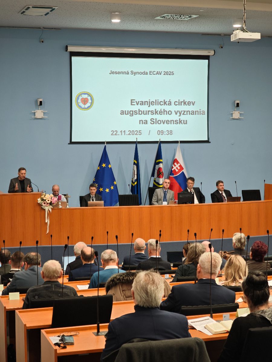 9:30 Jednodňové jesdenné rokovanie Synody, najvyššieho orgánu Evanjelickej cirkvi a. v. na Slovensku sa začína privítaním a pobožnosťou. Kazateľom je brat biskup VD ECAV, Peter Mihoč. V kázni na biblický verš z Evanjelia podľa Jána 20, 12: "A keď to povedal, dýchol na nich a hovoril: Prijmite Ducha Svätého," sa venoval téme nádeje a budúcnosti. Cirkev dnes trápi únava a slabosť, ubúdanie síl, stata generácií, tlak sveta, napäté vzťahy a nestabilita. Duch Boží však vidí svoju nevestu: cirkev, úplne inak. Jej krásu nevníma preto, že nepozná zápasy a bolesť, ale preto, že vie, komu patrí. Kde končí dych cirkvi, tam začína dych Krista. Synoda nie je iba pracovné stretnutie, ale pohľad cirkvi do zrkadla. Je to čas na nádych cirkvi. Aby si pripomenula kam kráča a z čoho žije. Biskup Mihoč pripomína, aby sme prijali Ducha, aby sme sa duchovne nadýchli a potom sa vybrali slúžiť.