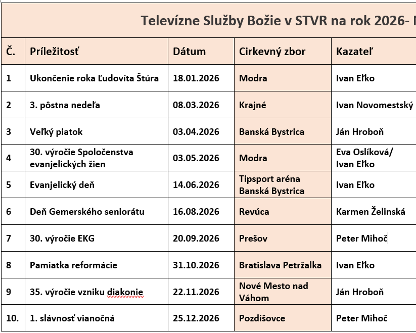 Zoznam mediálnych prenosov v roku 2026