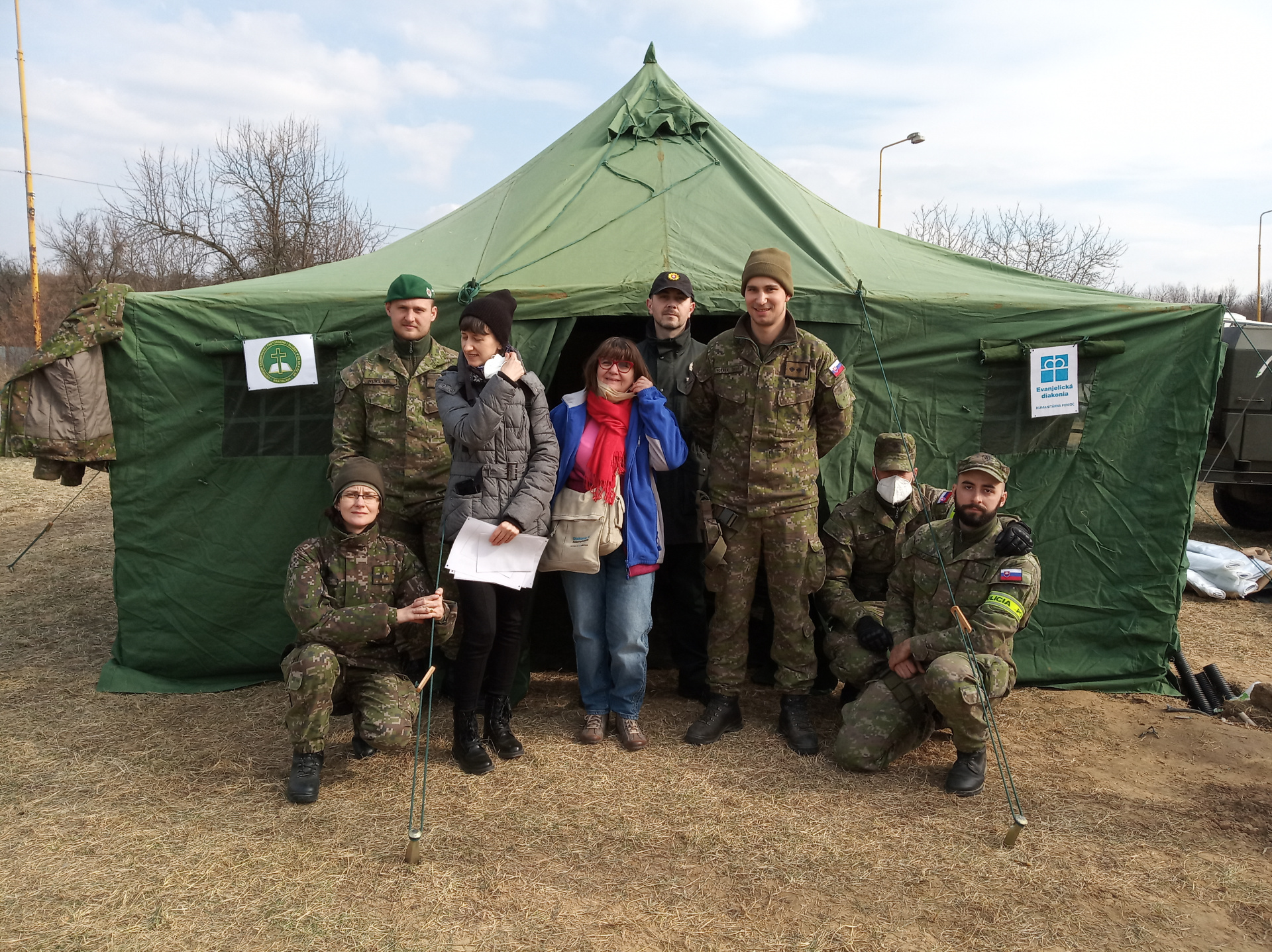 Na druhý deň, 3. marca 2022, Viktor Sabo doviezol stan a za pomoci tam službukonajúcich vojakov ho postavili. V stane sa strieda stála služba zložená z dobrovoľníkov Evanjelickej cirkvi a. v. na Slovensku, vojenských a policajných duchovných Ústredia Ekumenickej pastoračnej služby a Evanjelickej diakonie. Prvými službukonajúcimi boli policajní duchoví Janka Tabačková a Matúš Vongrej, vojenská duchovná Vlasta Kovaľová, z Evanjelickej diakonie Szilvia Buzalová a Katarína Šoltesová. Rotáciu služieb za ECAV zabezpečuje M. Cingeľ cez koordinátora Michala Tekelyho.