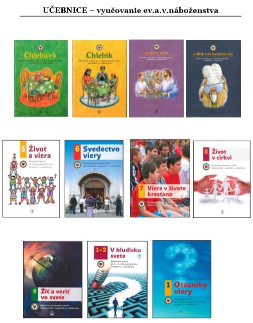 Ministerstvo školstva, vedy, výskumu a športu SR otvorilo trh s učebnicami. Tí, ktorí vyučujete náboženskú výchovu / náboženstvo ev. a. v. v základných školách, môžete si prostredníctvom školy objednať učebnice a pracovné zošity pre žiakov na vyučovanie náboženskej výchovy. Aktuálne informácie: https://www.minedu.sk/