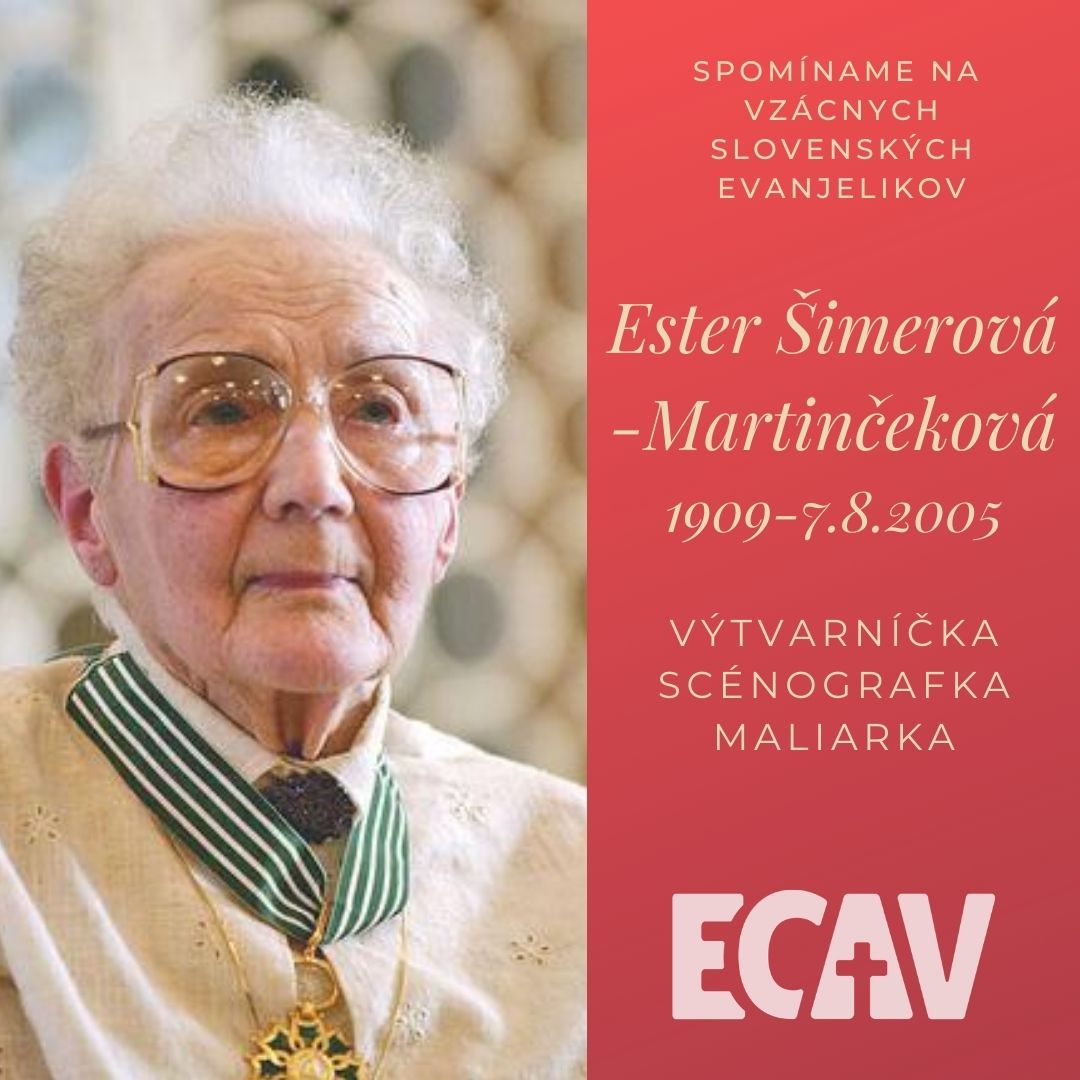 Dnes si pripomíname 15. výročie úmrtia VÝTVARNÍČY, SCÉNOGRAFIČKY a MALIARKY Ester Šimerovej- Martinčekovej. Narodila sa 23. januára 1909 v Bratislave a zomrela 7. augusta 2005 v Liptovskom Mikuláši.