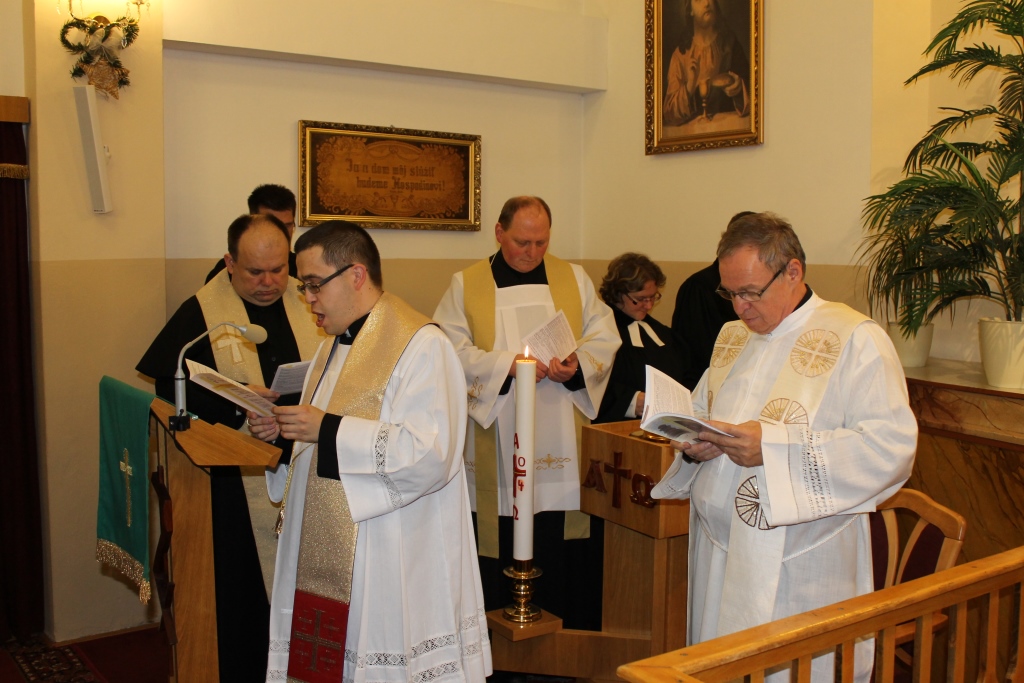 Nasledovali modlitby a prosby prednesené deviatimi duchovnými evanjelickej a rímskokatolíckej cirkvi. Texty z Písma svätého prečítali mladí bratia JUDr. Martin Kedro a Ing. Marcel Breče. Staroslovanský Otče náš zaznel v podaní mužských hlasov a klávesov zo SED Košeca. Program bohoslužieb obohatila sólovým spevom dist. art. Terézia Janeková-Pálová za organového sprievodu Mgr. Jaroslavy Polákovej, kantorky CZ ECAV v Považskej Bystrici. Toto historické ekumenické stretnutie vo svojom príhovore vyzdvihol a pozdravil aj primátor mesta Považská Bystrica doc. PhDr. PaedDr. Karol Janas.