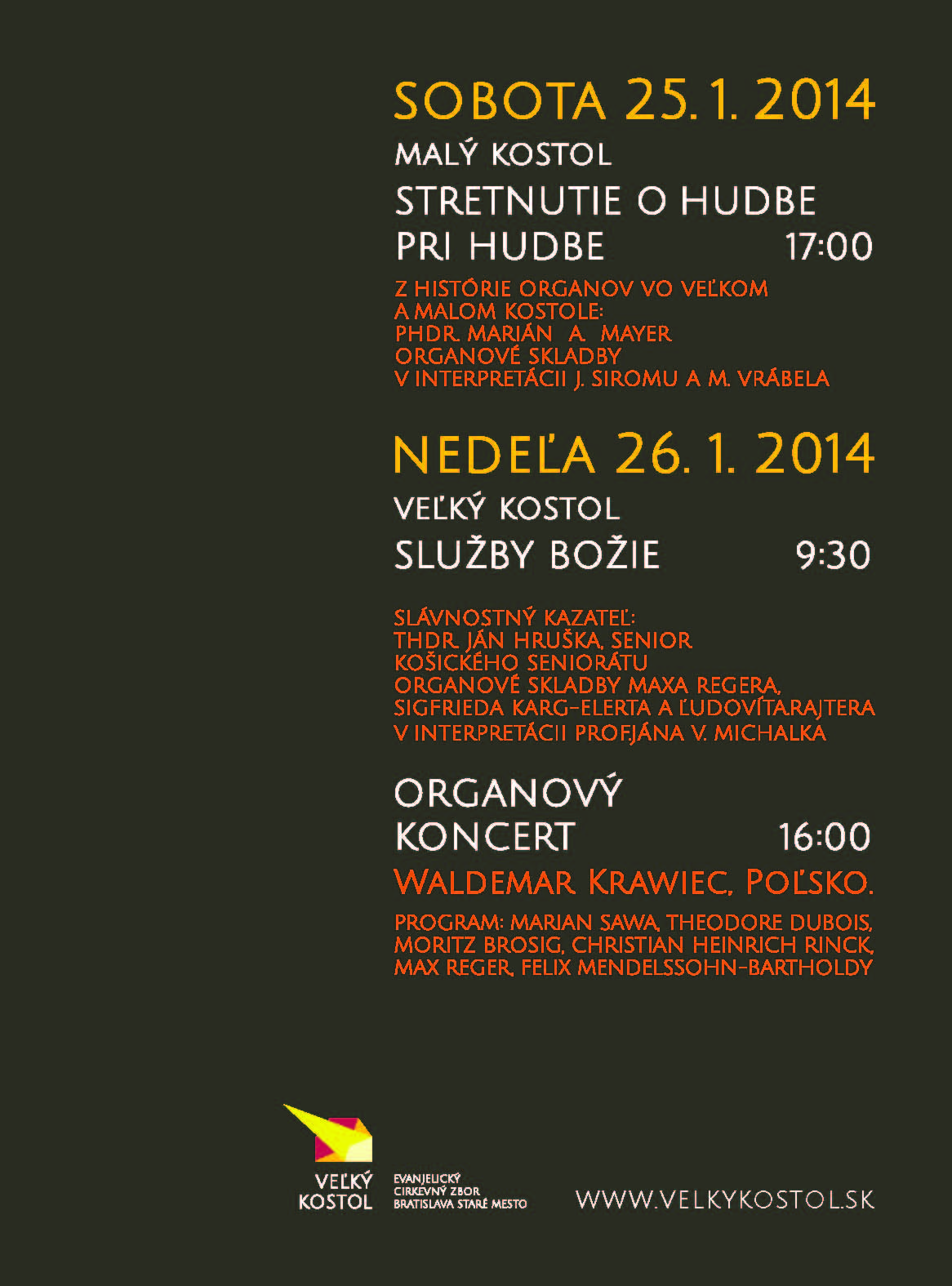 Nedeľa 26. 1. 2014 – 16.00 hod. – Veľký kostol – Organový koncert