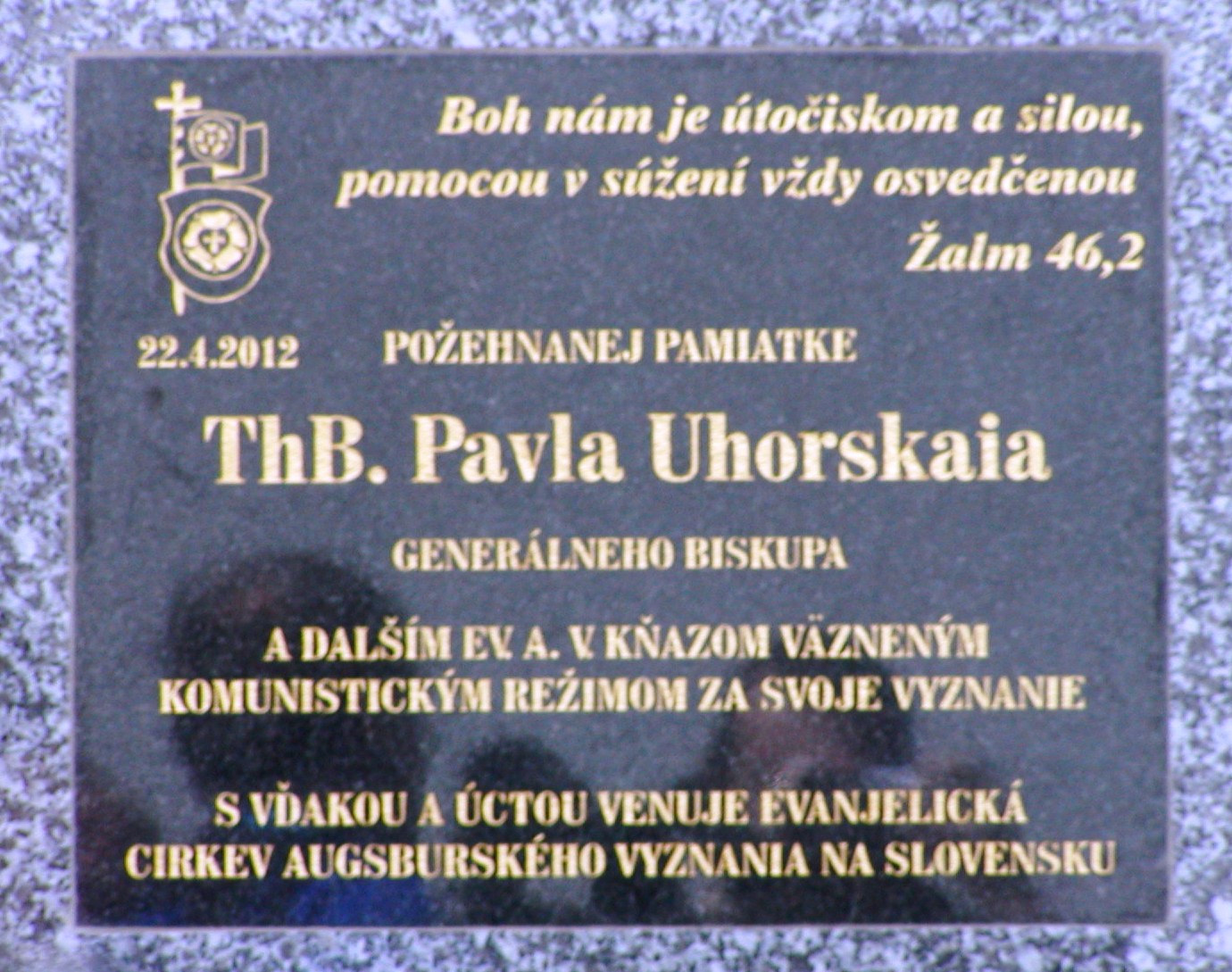 22. apríla 2012 na múre väznice v Ilave generálny biskup ECAV na Slovensku Miloš Klátik a generálny dozorca ECAV na Slovensku Pavel Delinga odhalili pamätnú tabuľu venovanú generálnemu biskupovi ThB. Pavlovi Uhorskaiovi a ďalším nespravodlivo väzneným evanjelickým a. v. farárom v rokoch komunistického režimu, ktorý sa usiloval o potlačenie cirkvi. Pamätná tabuľa bola inštalovaná na pripomienku súdnych procesov s evanjelickými a. v. duchovnými, ktoré sa začali na jar v roku 1962. Mnohí v nich boli nespravodlivo odsúdení, ďalších poslali do nútených pracovných táborov (PTP) či do technických práporov (TP) a mnohým bol odobratý štátny súhlas k duchovnej činnosti alebo boli preložení na iné miesto. Pri odhalení pamätnej tabule bol pripomenutý aj rok 1952, keď sa začali perzekúcie na evanjelickej bohosloveckej fakulte v Bratislave a boli prenasledovaní viacerí pedagógovia a študenti.