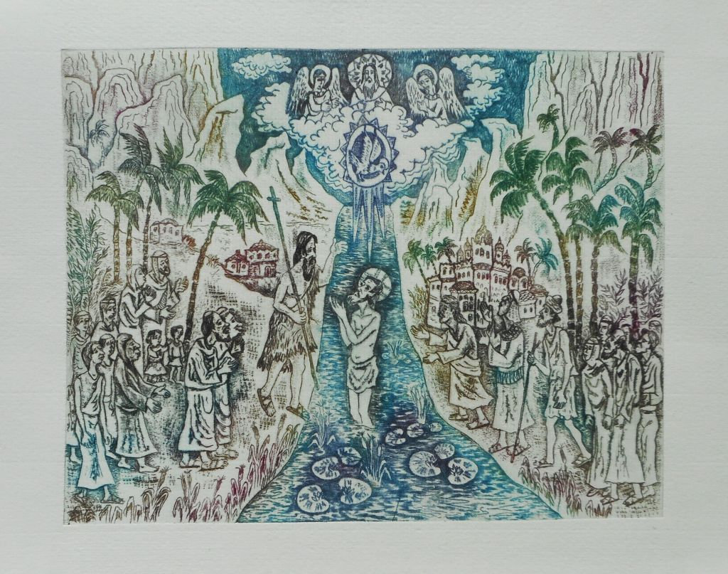 Pre najstarších: Môžeš si vyrobiť názornú ukážku Ježišovho krstu, podľa priloženého obrázku.