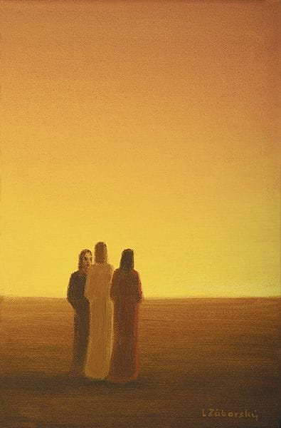 Po svojom vzkriesení sa Ježiš pripojil k dvom mužom z Emauzy, ktorí boli smutní a nešťastní z udalosti Veľkého piatku. Ich srdcia už neočakávali "niečo" nové. Kristus zomrel! Všetky očakávania sa úplne vytratili. Vzápätí na to si všimnú, že Niekto kráča 'za nimi' a potom už ide len 's nimi'. Ten Nikto je Ten, o ktorom celý čas rozjímali. Tu spoznajú, že je to Vzkriesený. Aká veľká radosť byť so živým Pánom.
