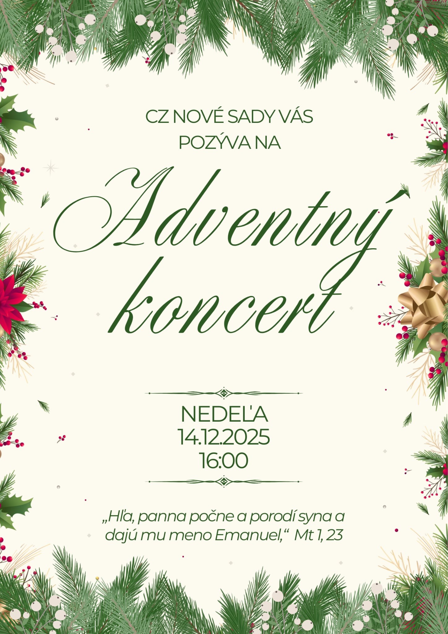 Opäť po roku si Vás dovoľujeme pozvať na adventno vianočný koncert v našom kostole. Príďte medzi nás zažiť dobré spoločenstvo a načerpať silu v tomto adventom čase.