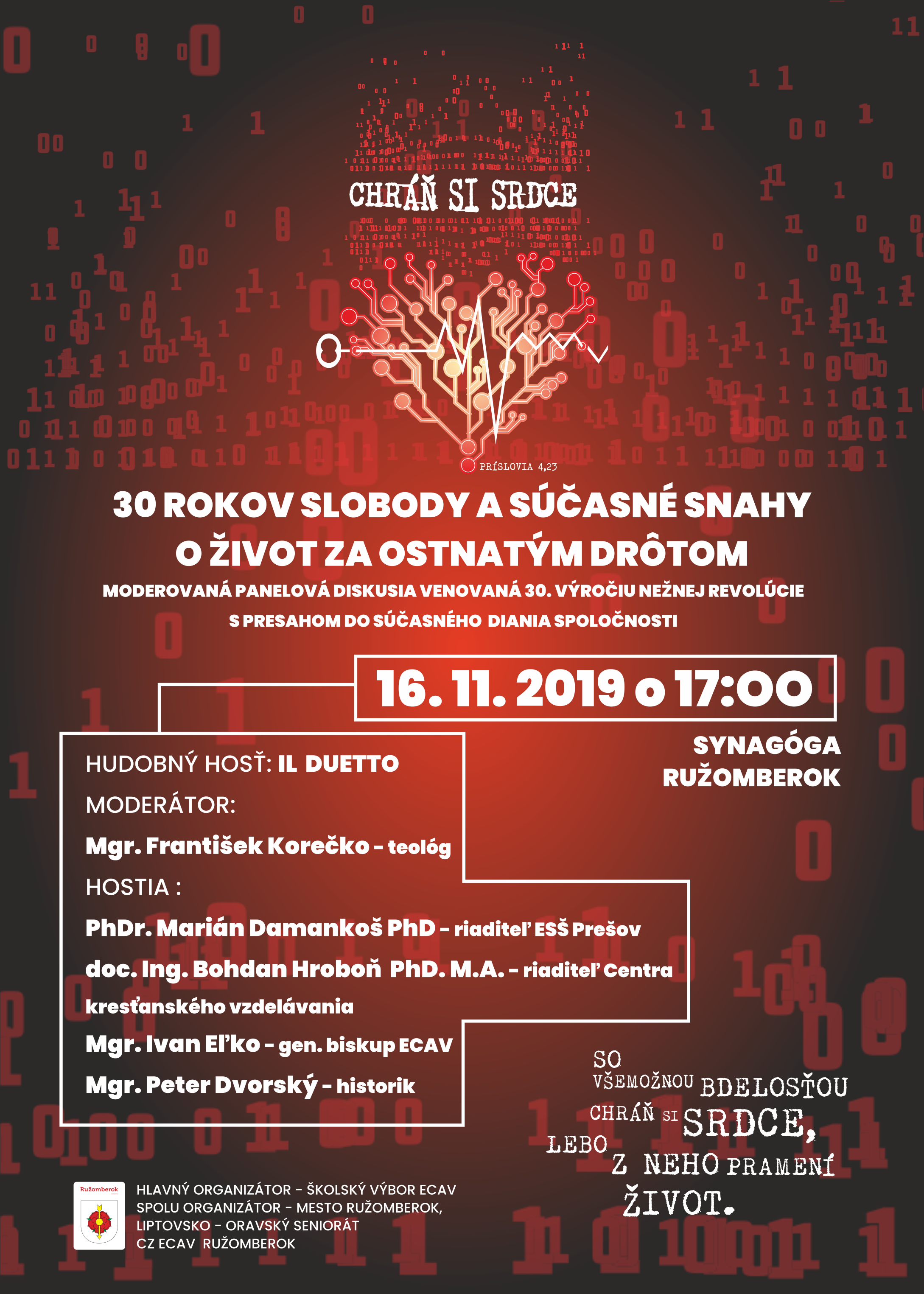 - 16. 11. o 17.00 hod.: Panelová diskusia, židovská synagóga v Ružomberku