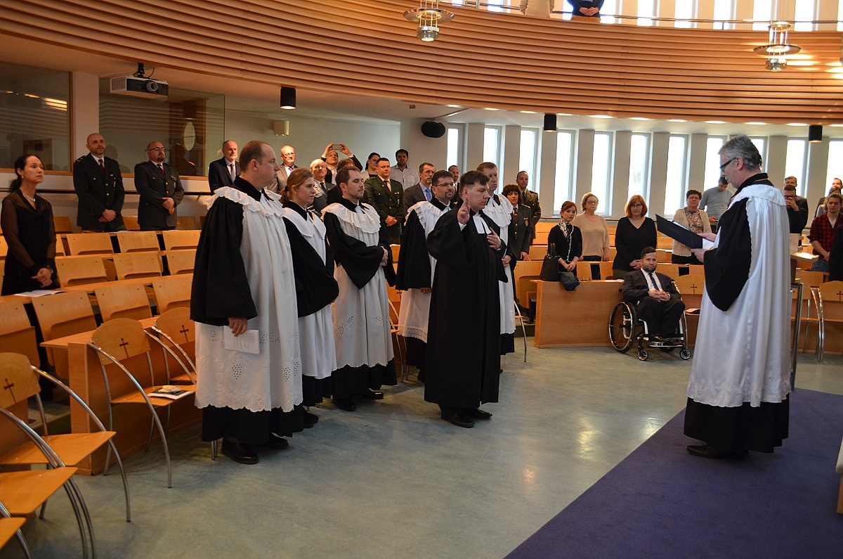 Potom nového duchovného po predpísanom sľube oficiálne vyhlásil za duchovného EPS a generálny duchovný plk. Marian Bodolló mu odovzdal dekrét o menovaní do radov duchovných Ústredia EPS v OS SR a OZ SR. Policajného duchovného po pozdravení jeho novým nadriadeným pplk. Milanom Petrulomoslovila aj rektorka Akadémie Policajného Lucia Kurilovská a k slávnostnému auditóriu sa prihovoril tiež dekan Evanjelickej bohosloveckej fakulty UK Milan Jurík.