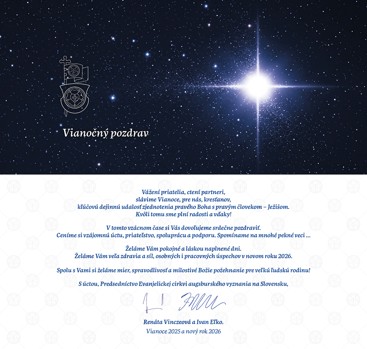 Bratia a sestry, prijmite vianočný pozdrav Predsedníctva ECAV na Slovensku.