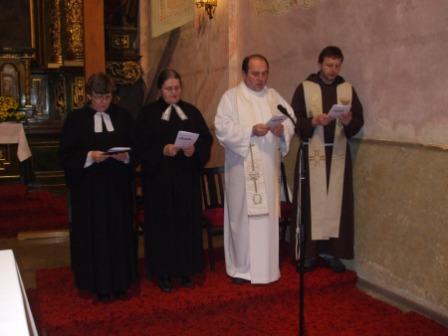 Tento kostol je blízky obom konfesiám, keďže bol pôvodne postavený ako evanjelický a striedavo ho používali katolíci i evanjelici. Bohoslužbe predsedali pezinský rímskokatolícky farár vdp. Ján Ragula, rektor kapucínskeho kostola v Pezinku P. Stanislav Kučák OFMCap, pezinská evanjelická zborová farárka Mgr. Helena Benková a Mgr. Daniela Horínková, evanjelická farárka na odpočinku v Pezinku. Súčasťou liturgie boli štyri piesne – dve z Jednotného katolíckeho spevníka a dve z Evanjelického spevníka, ktoré spievali veriaci spoločne bez rozdielu vierovyznania. Úvodnú liturgiu viedol a prítomných privítal miestny farár J. Ragula, biblické čítania a prosby čítali veriaci oboch konfesií. Kázeň predniesla farárka H. Benková. Veriaci spoločne vyznali vieru, predniesli modlitbu Pánovu a dali si znak pokoja podaním rúk. Na záver udelili veriacim požehnanie D. Horínková a J. Ragula. Veriaci sa rozišli po speve hymnu Teba Bože chválime, ktorý sa nachádza v spevníkoch oboch konfesií.