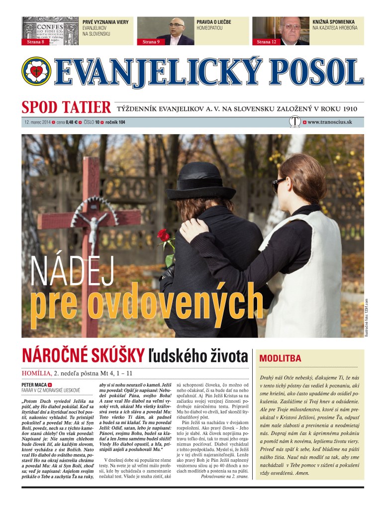 Na historickej strane Posol prináša článok o prvých vierovyznaniach evanjelikov na Slovensku a v rozhovore s lekárom Štěpánom Ruckim sa pozrieme na skutočnú pravdu o liečbe homeopatiou. V desiatom tohtoročnom EPST nájdete aj informáciu o knihe, ktorá vyšla ako spomienka na kazateľa Jána Bohdana Hroboňa.