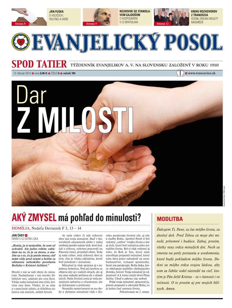 Dar z milosti – tak býva vysvetľovaný milodar, ktorým prispievame na fungovanie cirkevných zborov. Ako máme chápať túto štedrosť, vďaku Bohu prejavenú v milodare, a na aký účel by naše zbory mali použiť takto získané prostriedky? Odpovede hľadáme v téme najnovšieho čísla Evanjelického posla spod Tatier.