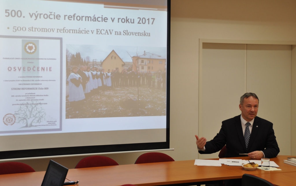 Brat generálny biskup ďalej upriamil pozornosť na aktivity ECAV v rámci príprav na blížiace sa 500. výročie Lutherovej reformácie, ako sú Lutherova dekáda, 500 stromov reformácie v ECAV na Slovensku, teologické konferencie na témy smerujúce k tomuto výročiu a vydávanie zborníkov z týchto konferencií, ako aj iných publikácií. Informoval o tom, že prípravám k 500. výročiu reformácie sa venovali aj na medzinárodných zasadnutiach viacerých grémií v Helsinkách, Zürichu a Wittenbergu, na ktorých sa zúčastnil. Nezabudol pripomenúť ani blížiace sa okrúhle výročia narodenia Ľudovíta Štúra a Jozefa Miloslava Hurbana, na ktorých dôstojné pripomenutie sa naša cirkev tiež pripravuje.