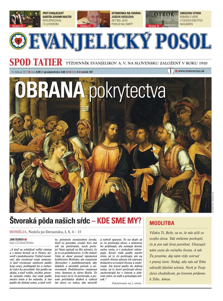 Prinášame vám i článok o prvom evanjelickom kantorovi Johannovi Walterovi a spomienku na českobratského evanjelického farára Josefa Veselého, ktorý zomrel vo veku takmer 103 rokov.