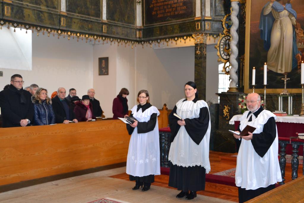 Pozvaných hostí aj ostatných veriacich na slávnostných službách privítal zborový dozorca Jozef Gemza. Následne sa prihovoril Mgr. Ján Matis, administrátor seniora Tatranského seniorátu. Výstižne uviedol, že hoci v chlade, ale o to viac nás pri srdci i na duši hreje dôvod konania služieb Božích. Počas kázne slova Božieho sa zamýšľal nad významom i spôsobom budovania chrámov, hovoril o otesávaní kameňa a vykreslil i otesávanie „kameňa“ v každom jednom človeku. Vyslovil túžbu, aby každý kresťan bol živým kameňom otesávaným práve láskou a milosťou nášho Pána Ježiša Krista, lebo iba tak môžeme v sebe vybudovať chrám na oslavu nášho Boha a len takto okresávaní sa môžeme s láskou, milosťou a oddanosťou plnohodnotne stretávať aj v tých skutočných, kamenných chrámoch, ktoré práve na tento účel naši predkovia vystavili – na stretávanie sa so skutočným Pánom Bohom.