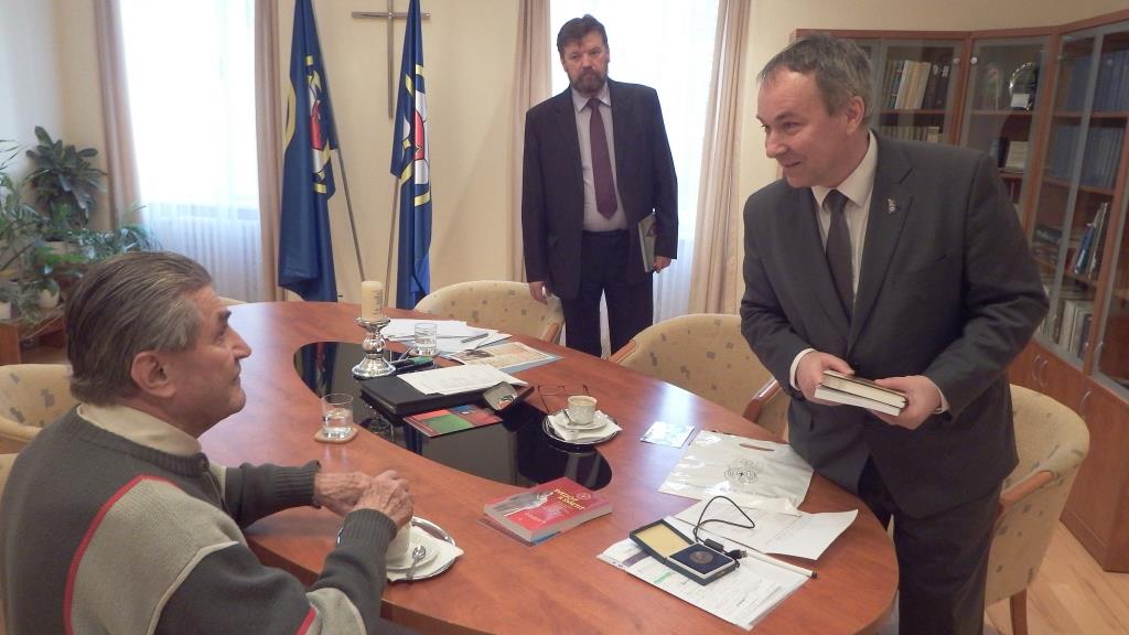Brat generálny biskup Miloš Klátik poďakoval bratovi Franciscimu za vzácny dar a na znal vďaky mu venoval niekoľko kníh z produkcie vydavateľstva Tranoscius.
