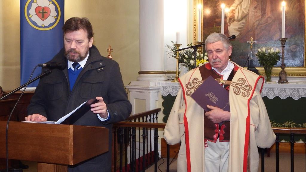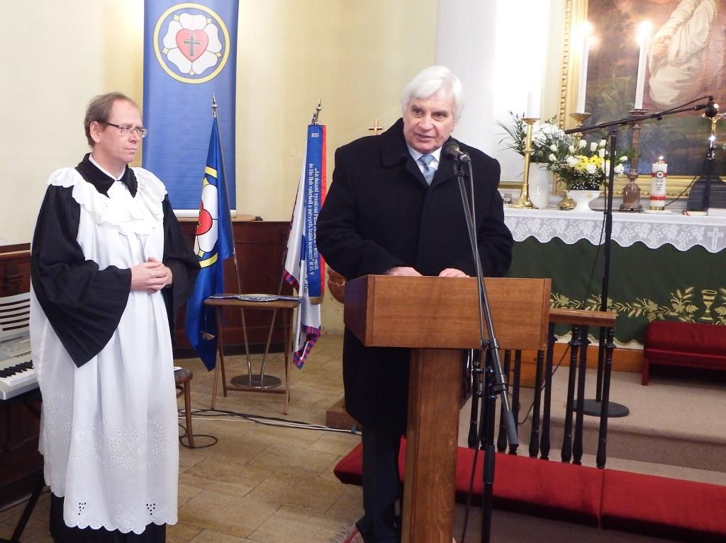 Generálny biskup Miloš Klátik zablahoželal oceneným a poďakoval všetkým prítomným, ktorí si napriek treskúcej zime našli cestu do chrámu. Zvlášť poďakoval Novohradskému seniorátu, predsedníctvu NOS, domácemu cirkevnému zboru aj ostatným, ktorí s láskou pripravovali toto stretnutie. Vyslovil presvedčenie, že všetkým zostane v pamäti spomienka na zaplnený chrám a tento deň. Vyzval, aby sme stále mali pred očami Ježiša a dosvedčovali to svojím životom, aby sme budovali cirkev, nemali medzi sebou rozpory, ale hľadali to, čo nás spája, aby sme žili ako kresťania – evanjelici.