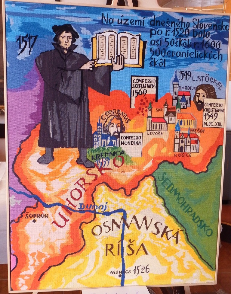 V susednej budove pedagogickej a sociálnej akadémie si početní návštevníci prezreli výstavu „500 rokov reformácie. ECAV na Slovensku“. Svoje prezentácie tam mali aj Evanjelické bohoslovecká fakulta UK, Výbor na ochranu Božieho stvorenstva a Evanjelická diakonia, ktorá tentoraz predstavila prácu v Stredisku Evanjelickej diakonie v Hontianskych Moravciach i výrobky jej klientov. Zvlášť zaujali výrobky žien z CZ Veľký Krtíš, ktoré si bolo možné zakúpiť, no aj vyrobiť v tvorivých dielňach. Knihy a kalendáre ponúkalo vydavateľstvo Tranoscius, tentoraz zastúpené sestrou Zajdenovou z Kníhkupectva/libressa v Banskej Bystrici. Drobné darčekové predmety k 500. výročiu reformácie priviezla Viera Koleničková z Rimavskej Soboty. Popoludňajší program aj vo folklórnom duchu