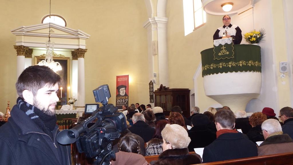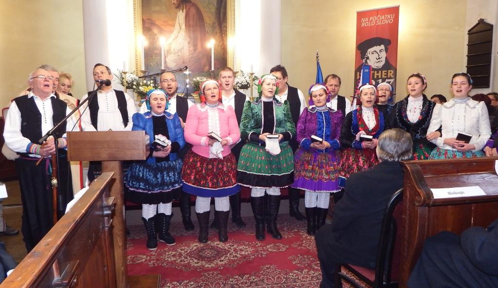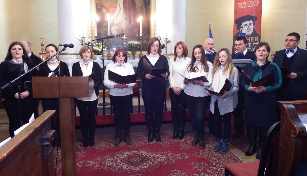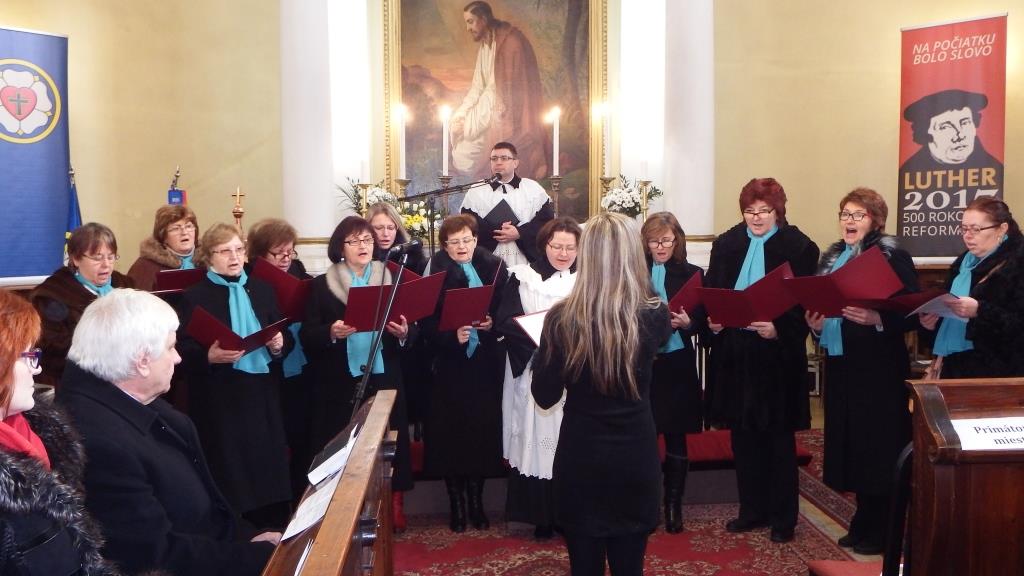 V slnkom zaliatom a už príjemne vyhriatom kostole sa veriaci z Novohradského seniorátu zišli aj popoludní o 14.00 hod. a zaplnili kostol hádam do posledného miestečka. Privítal ich seniorálny dozorca NOS Ján Dobšinský a senior NOS Ivan Mucha na úvod poslúžil duchovným príhovorom. Na základe textu z 2Tim 2, 1 „Ty teda, syn môj, posilňuj sa milosťou, ktorá je v Kristovi Ježišovi“ oslovil veriacich slovami: „Bratia a sestry, o milosti nestačí iba počúvať, ňou je potrebné v prvom rade žiť. A to isté platí aj o reformácii. Ak Bohu nedovolíme, aby vstúpil do nášho srdca, nikdy z nás nebudú šľachetní, úprimní ani láskaví ľudia. V tento deň si na pôde Novohradského seniorátu pripomíname 500. výročie reformácie – významnú udalosť v dejinách sveta i cirkvi. Skúsme pri pomyslení na predkov našej viery pouvažovať nad tým, či práve milosť nie je tým, čo nám tak veľmi v súčasnosti chýba, čo sa nám, kresťanom, má zračiť v tvári, horieť v srdci a čo má najviac priťahovať do cirkvi tých, ktorí hľadajú pokoj, porozumenie, prijatie a lásku.“