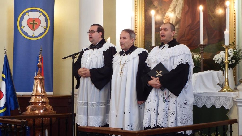 Úvodnú liturgiu mali konsenior NOS Jaroslav Ďuriš a domáci farári Ľudovít Hroboň a Mária Hroboňová. Kázňou slova Božieho poslúžil dištriktuálny biskup Milan Krivda, nakoľko pozvaný hosť zo Slovenskej evanjelickej a. v. cirkvi v Srbsku biskup Samuel Vrbovský nemohol pricestovať pre náhle ochorenie. Brat biskup Krivda kázal na základe biblického verša určeného pre Novohradský seniorát: „A tak ospravedlnení z viery máme pokoj s Bohom skrze svojho Pána Ježiša Krista.“ (R 5, 1) Na záver kázne povedal: „Pokoj s Bohom môžeme mať jedine skrze Ježiša Krista, keď prijmeme Jeho dielo záchrany vierou a odovzdáme sa Mu celým svojím životom. Pán Boh nás nikdy nás neopustí. Bratia a sestry, vzdávajme aj my Bohu chválu za to, že už pred 500 rokmi túto pravdu priniesol znovu na svetlo Božie náš reformátor Dr. Martin Luther, ale aj iní mužovia reformácie a my až dodnes môžeme podľa toho nielen veriť, ale aj svoju vieru žiť.“