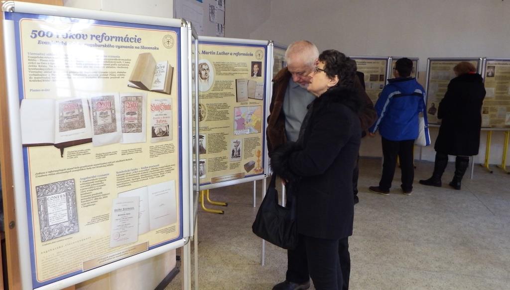 V susednej budove pedagogickej a sociálnej akadémie si početní návštevníci prezreli výstavu „500 rokov reformácie. ECAV na Slovensku“. Svoje prezentácie tam mali aj Evanjelické bohoslovecká fakulta UK, Výbor na ochranu Božieho stvorenstva a Evanjelická diakonia, ktorá tentoraz predstavila prácu v Stredisku Evanjelickej diakonie v Hontianskych Moravciach i výrobky jej klientov. Zvlášť zaujali výrobky žien z CZ Veľký Krtíš, ktoré si bolo možné zakúpiť, no aj vyrobiť v tvorivých dielňach. Knihy a kalendáre ponúkalo vydavateľstvo Tranoscius, tentoraz zastúpené sestrou Zajdenovou z Kníhkupectva/libressa v Banskej Bystrici. Drobné darčekové predmety k 500. výročiu reformácie priviezla Viera Koleničková z Rimavskej Soboty.