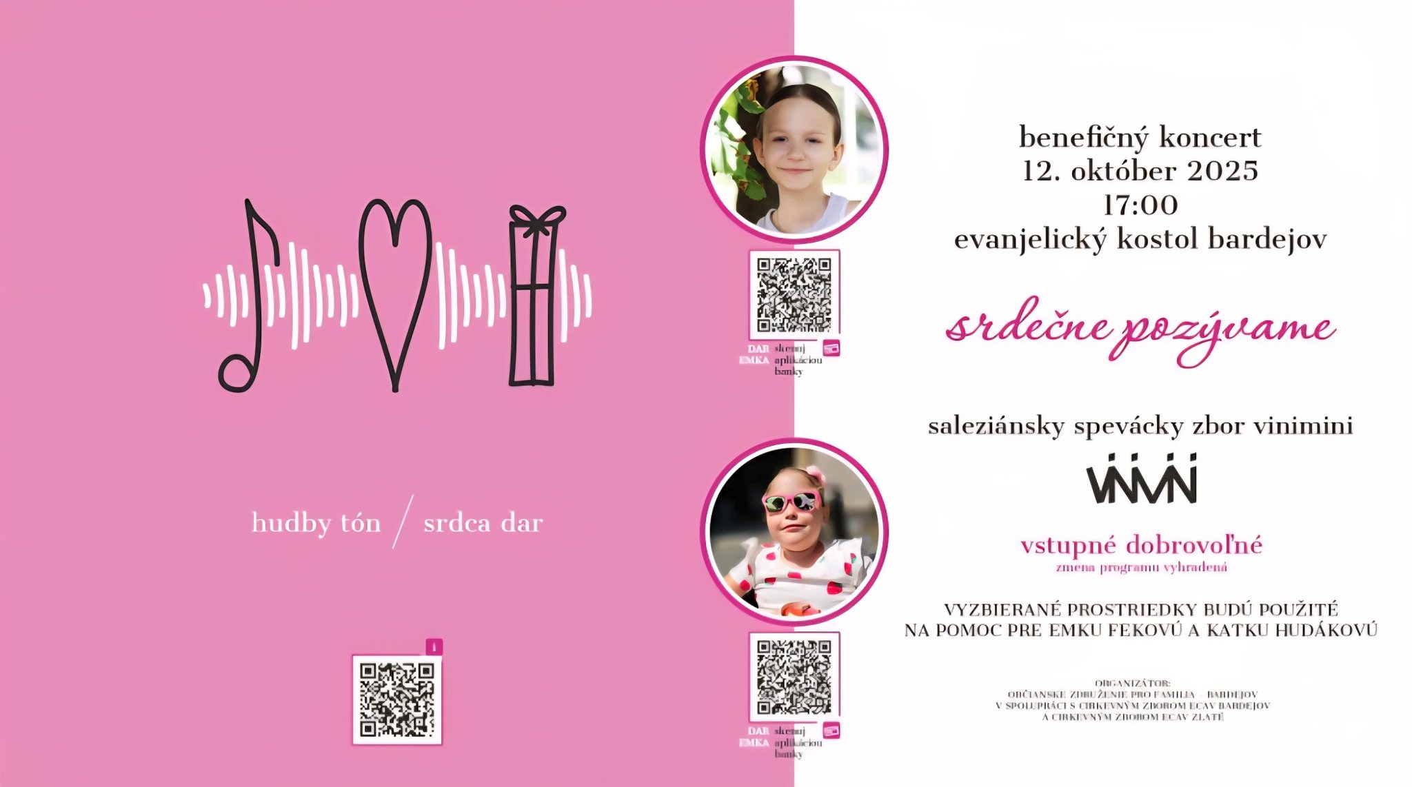 Preto sa 12. októbra 2025 spojíme v Bardejove pri benefičnom koncerte, aby sme pomohli práve im. Hudba v ten večer nebude len o tónoch – bude o spolupatričnosti, nádeji a srdciach, ktoré chcú pomáhať.