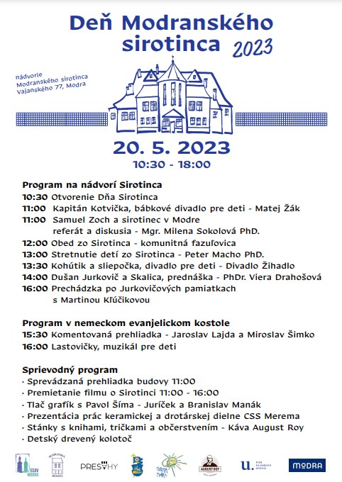 Preto srdečne pozývame všetkých - predovšetkým ľudí, ktorí v sirotinci prežili časť svojho detstva - a aj všetkých ostatných 20. mája 2023 od 10:30 h na Deň sirotinca do Modry.