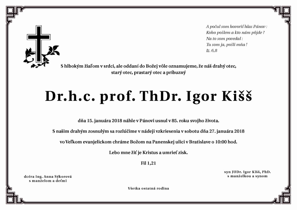 Pohrebná rozlúčka s bratom Dr. h. c. prof. ThDr. Igorom Kiššom