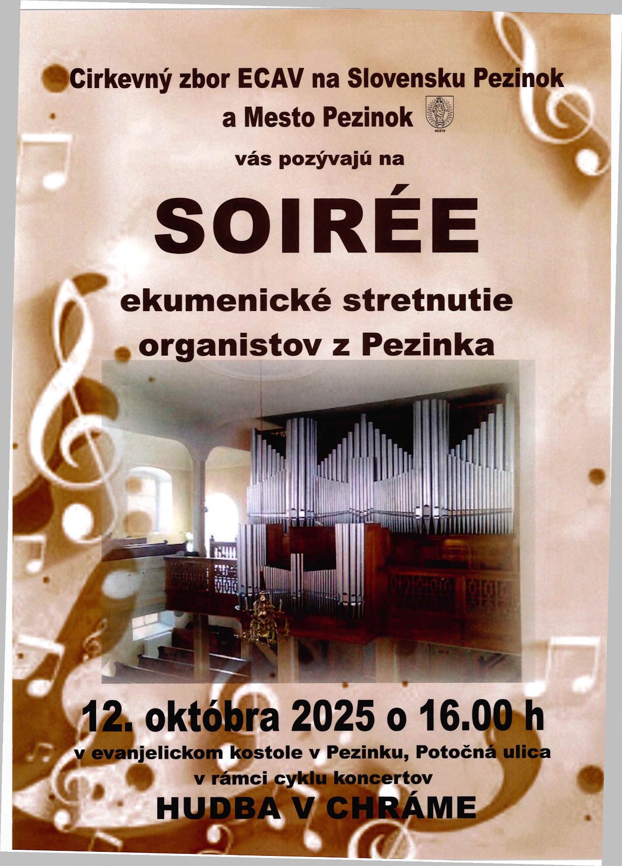 Pozývame na ekumenické stretnutie organistov z Pezinka. 12. 10. 2025 o 16.00 hod., evanjelický kostol v Pezinku na Potočnej ul.