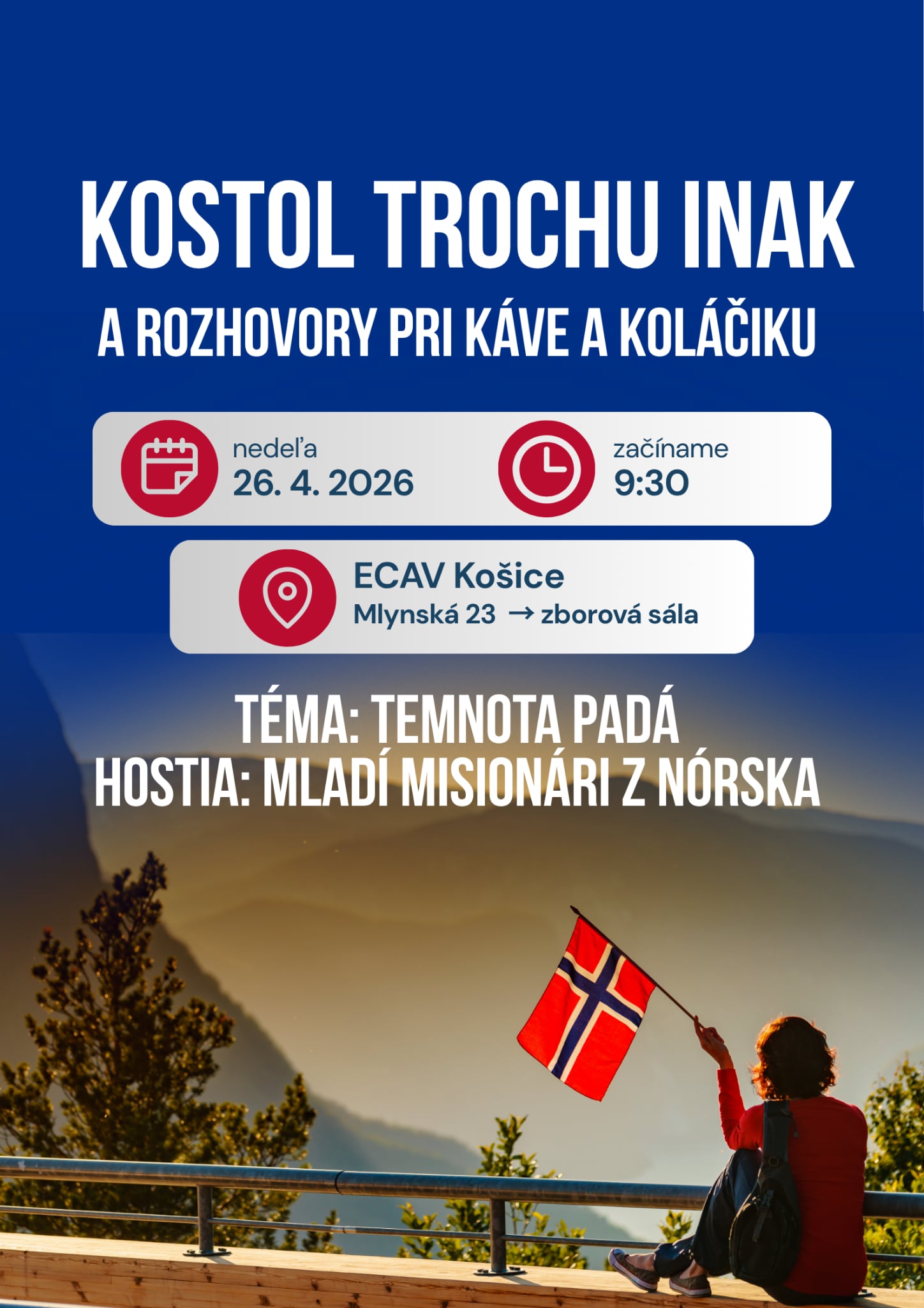 Srdečne pozývame do spoločenstva cirkvi teraz v nedeľu, 26.4.2026 o 9.30 hod., do Košíc. Čakajú na vás inšpiratívni hostia, Božie slovo, chvály, svedectvá, občerstvenie a verím, že nad tým všetkým a v tom všetkom zjavná Božia prítomnosť a moc Ducha Svätého.