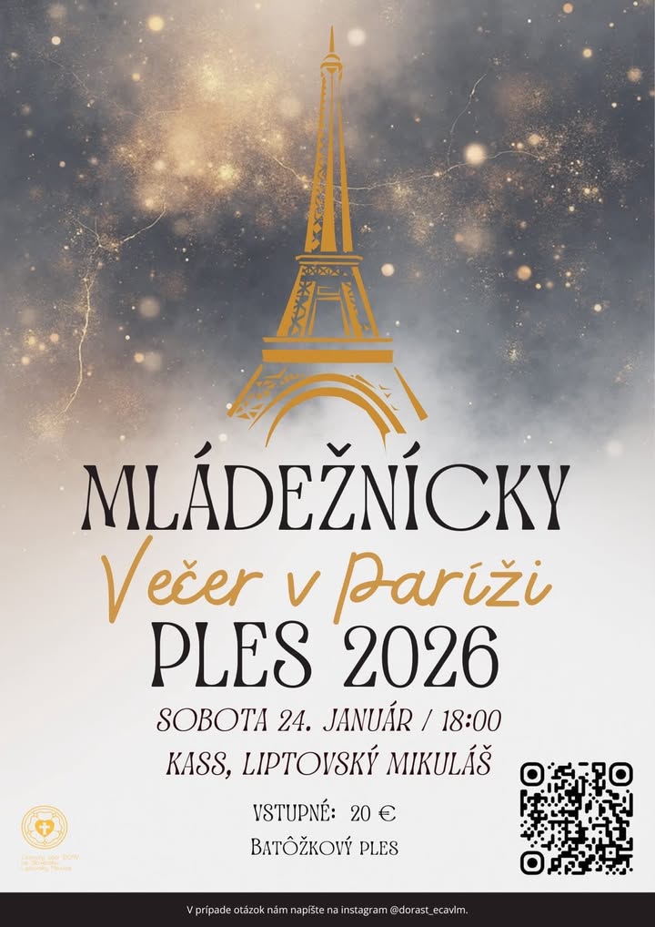 Ahojte mládežníci, s úctou a radosťou vás pozývame na Mládežnícky ples 2026 – Večer v Paríži, ktorý organizuje mládež Cirkevného zboru ECAV Liptovský Mikuláš.