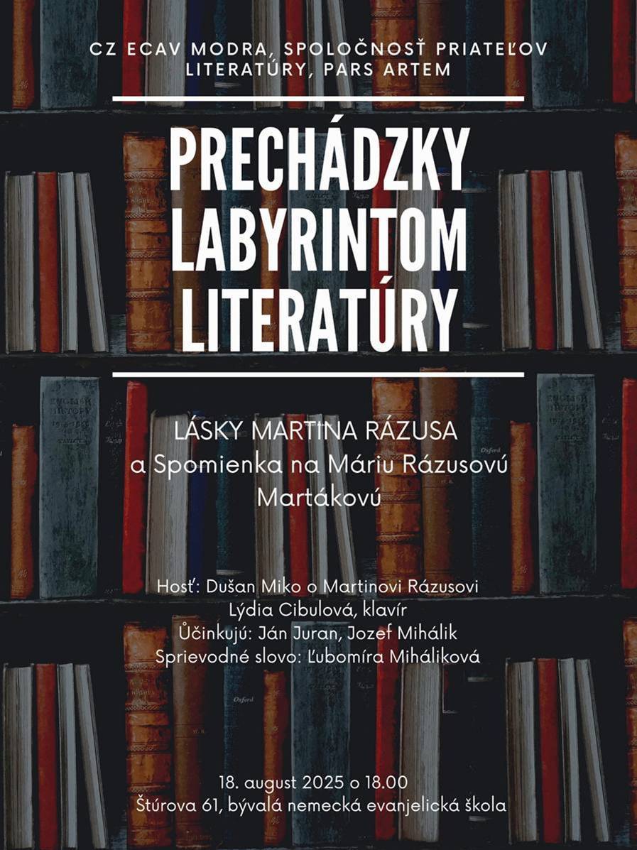 Pozvánka do Modry na Prechádzku labyrintom literatúry na 18. augusta 2025