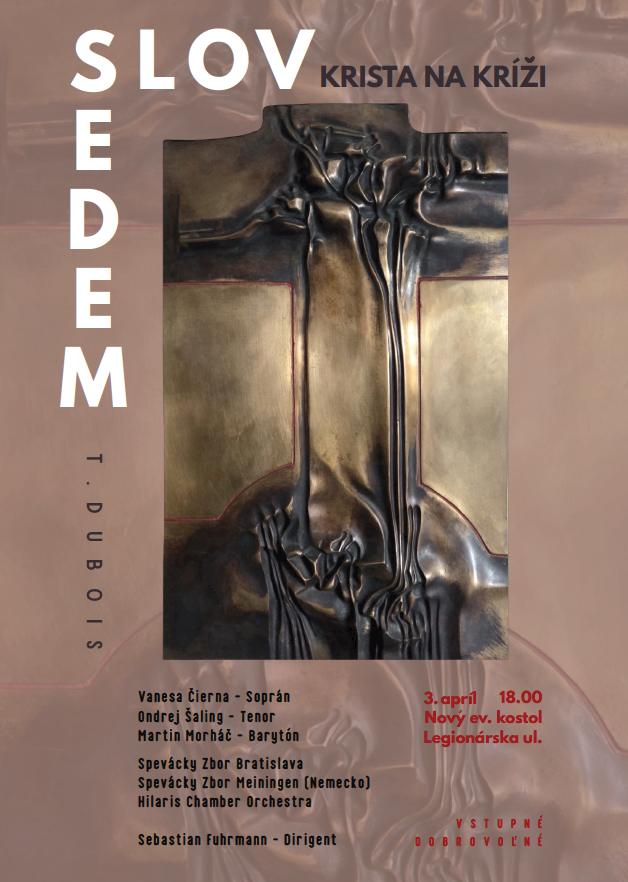 Srdečne vás pozývame na Veľkopiatočné pašie do Nového evanjelického kostola na Legionárskej ulici v Bratislave, 3. apríla 2026 o 18.00 h, kde zaznie nádherné oratórium francúzskeho skladateľa Théodore Dubois, Sedem slov Krista na kríži.