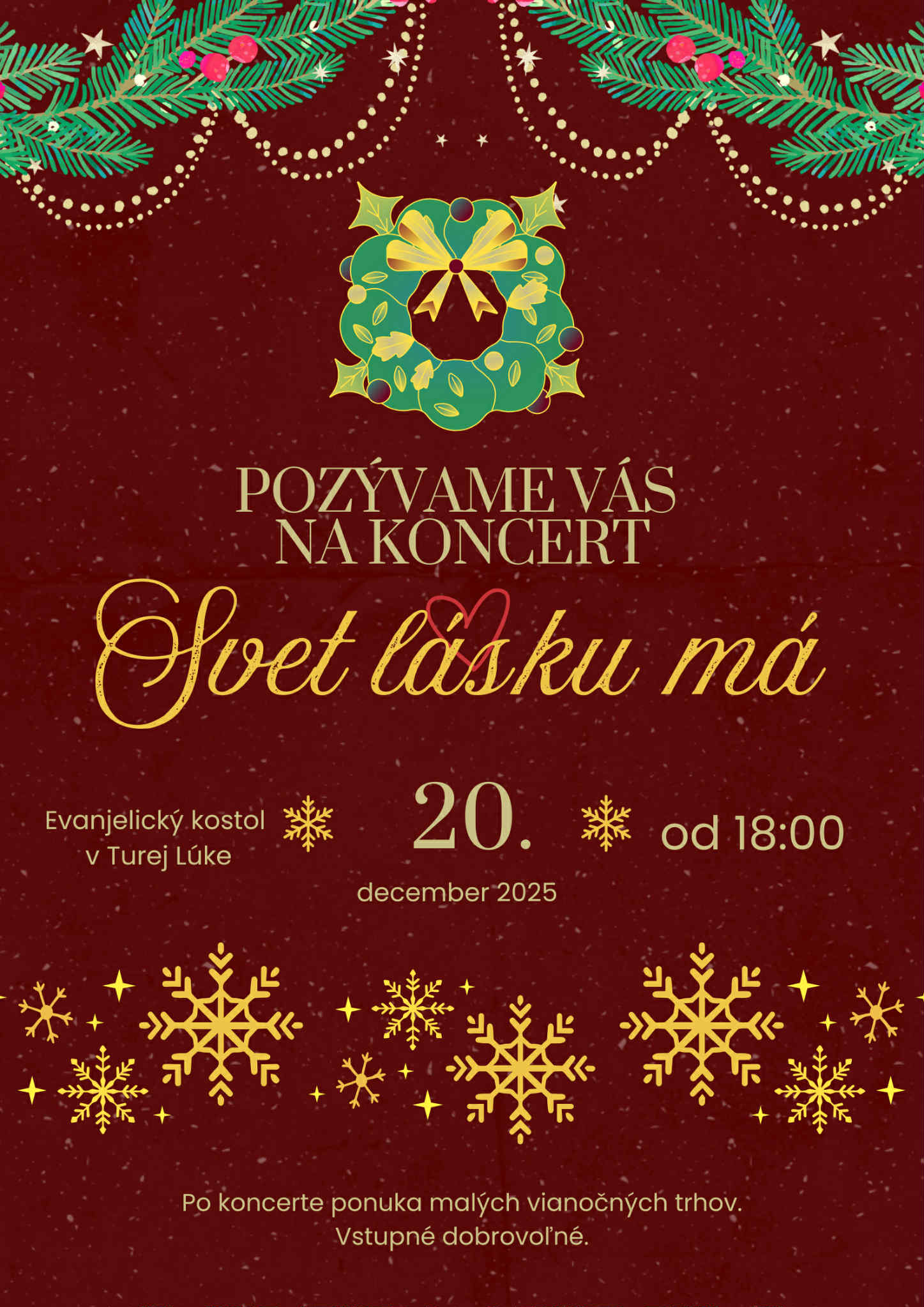 A opäť prichádza náš koncert "Svet lásku má", už v sobotu 20.12. 2025 o 18.00 hod. Veľmi sa tešíme na všetkých, ktorí budú spievať, hrať, jednoducho, ktorí položia svoje srdce na našu dlaň. A tešíme sa aj na všetkých vás.